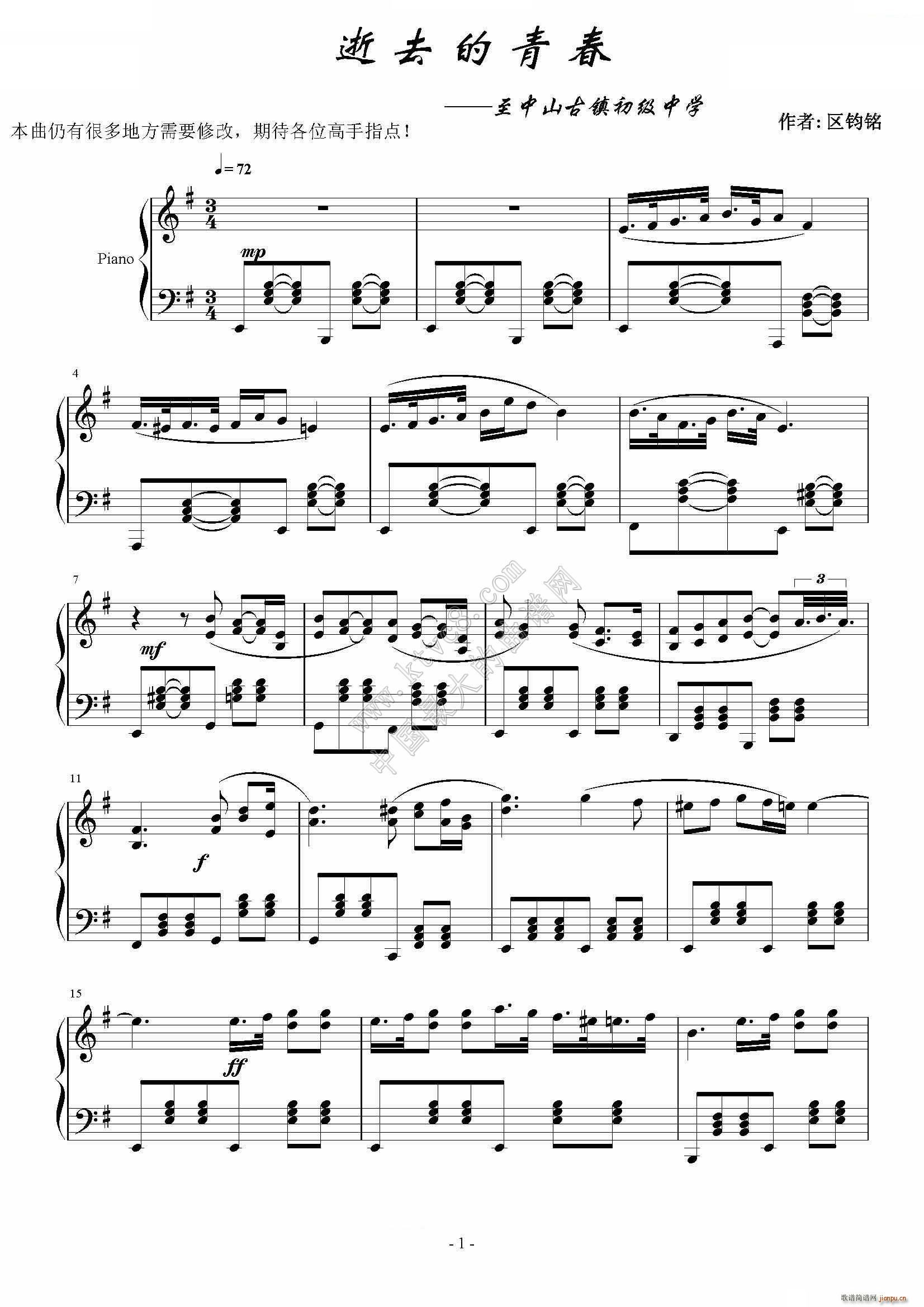 [钢琴谱]逝去的岁月 ∮亞→薩∮