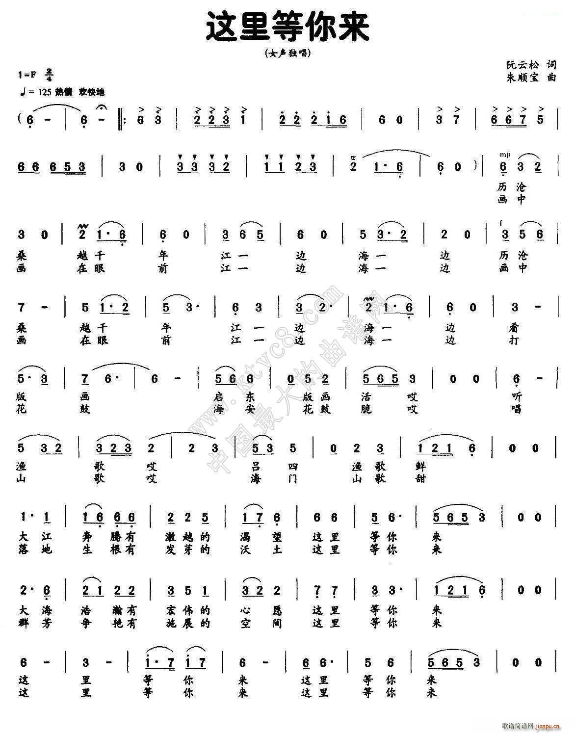 [八字歌谱]《这里的人们等你来》海伦词,谢铁跃曲,黄清林编