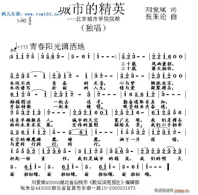 [五字歌谱]城市的精英 刘爱斌 词 曲