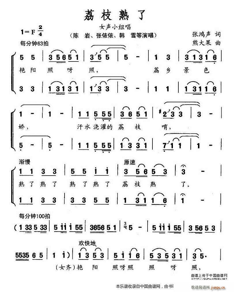 [合唱谱]荔枝熟了(女声小组唱) 合唱谱