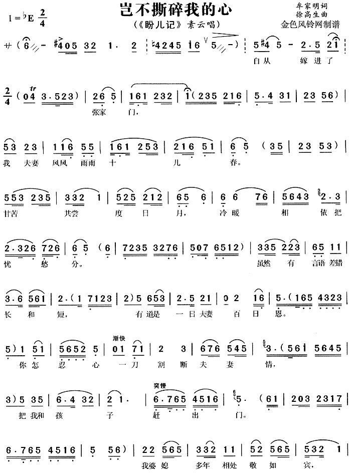 [七字歌谱]岂不撕碎我的心 黄梅戏《盼儿记》