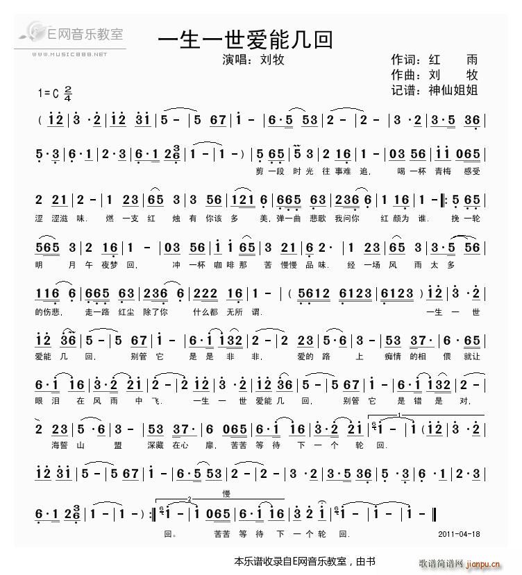 [七字歌谱]《一生一世爱不够》黄键雄词曲,黄清林编