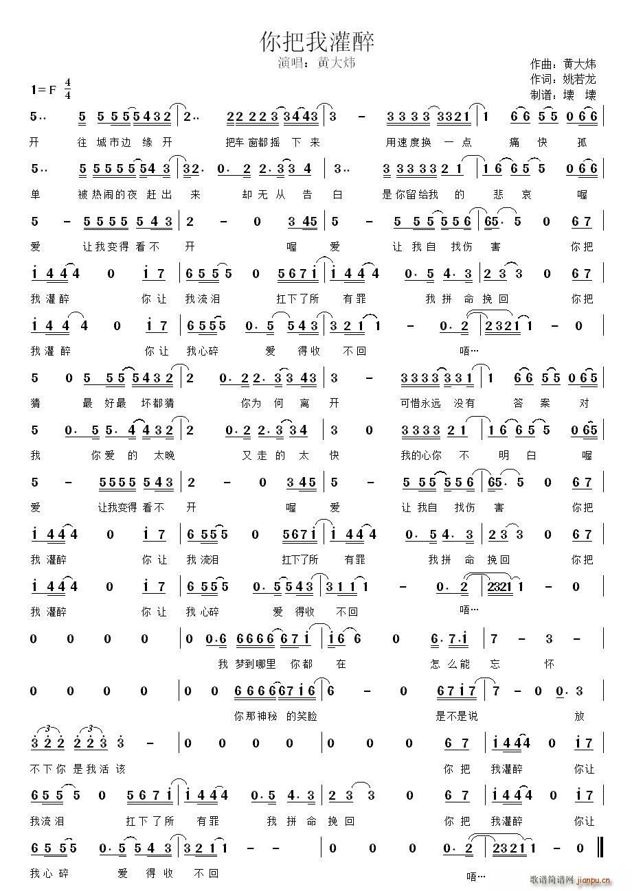 [九字歌谱]黄大炜-你把我灌醉 未知