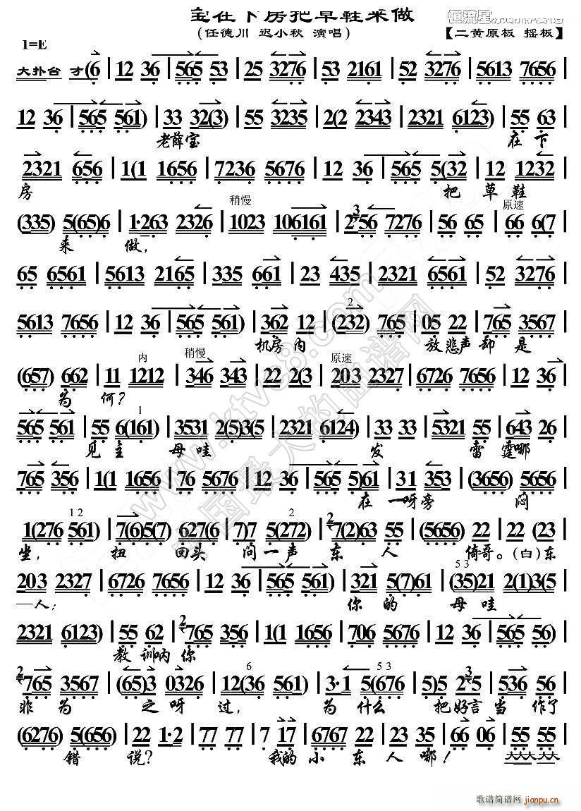 > 老薛宝在下房把草鞋来做(《三娘教子》选段、琴谱)
