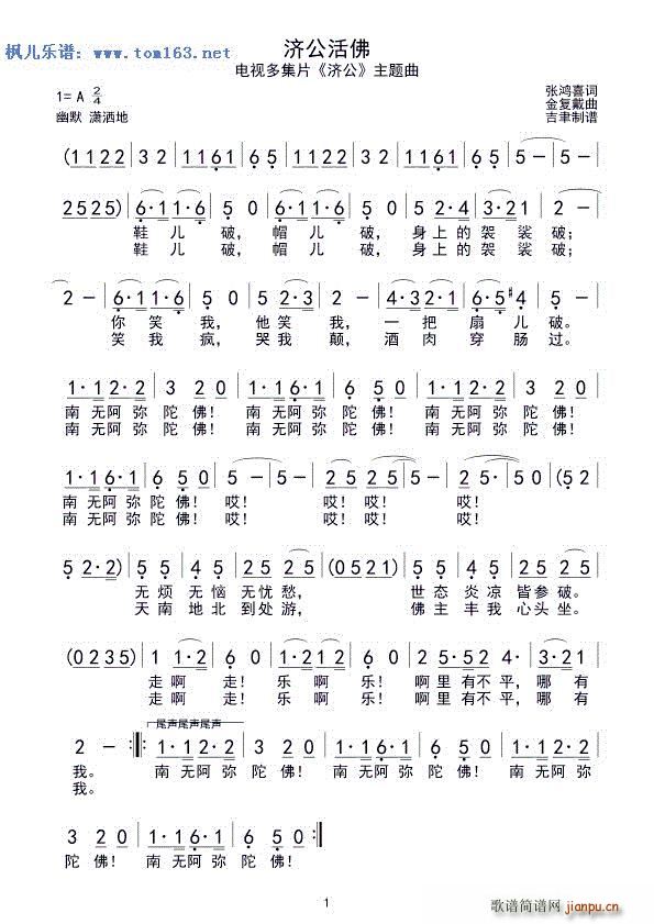 [十字及以上]济公活佛(电视剧《济公》主题曲)