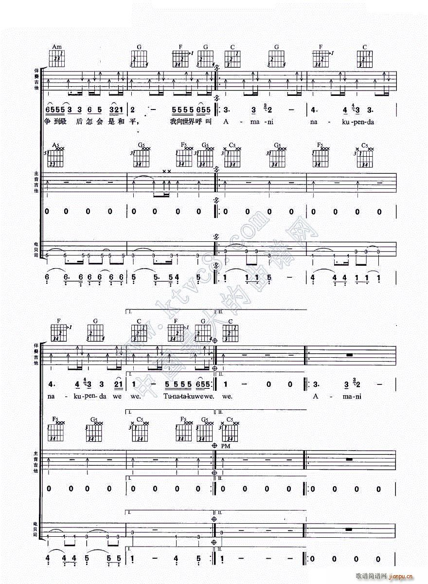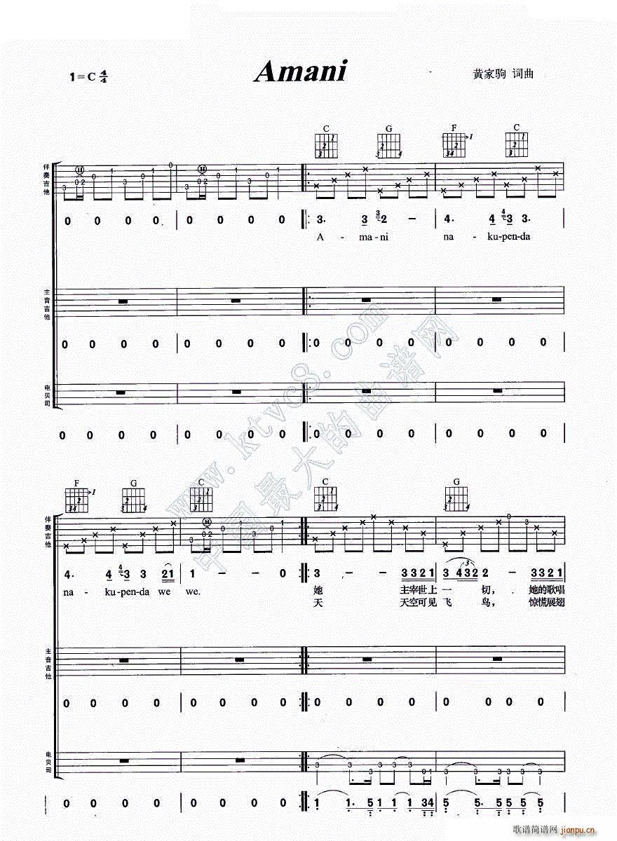 [吉他谱]Amani(吉他组合弹唱)