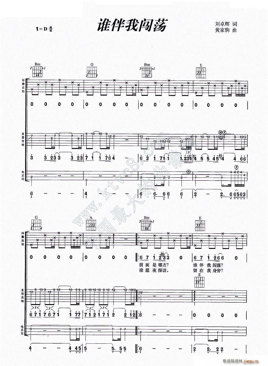 [吉他谱]谁伴我闯荡(吉他组合)