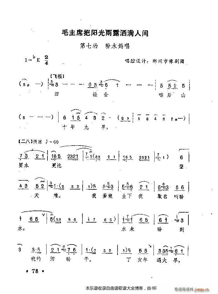 [豫剧曲谱]豫剧 毛主席把阳光雨露洒满人间