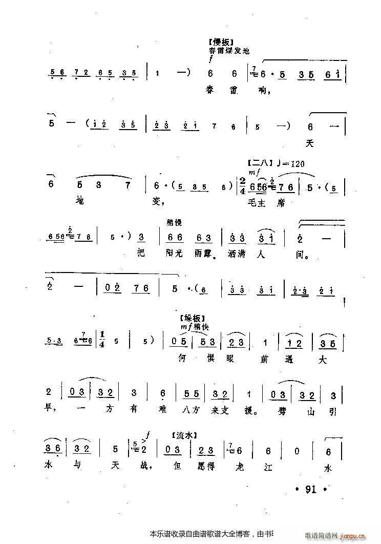 [豫剧曲谱]毛主席把阳光雨露洒满人间(《龙江颂》 唱段) 盼水妈
