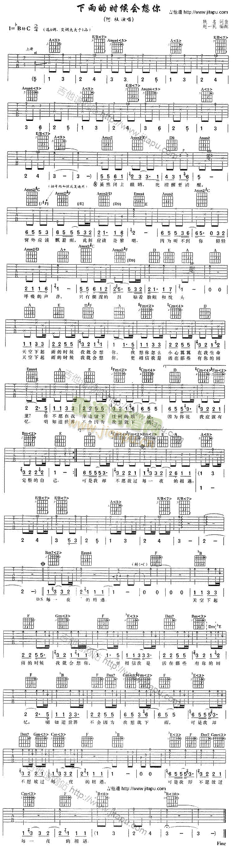 当前位置: 歌谱简谱网 > 吉他谱 > 下雨的时候会想你