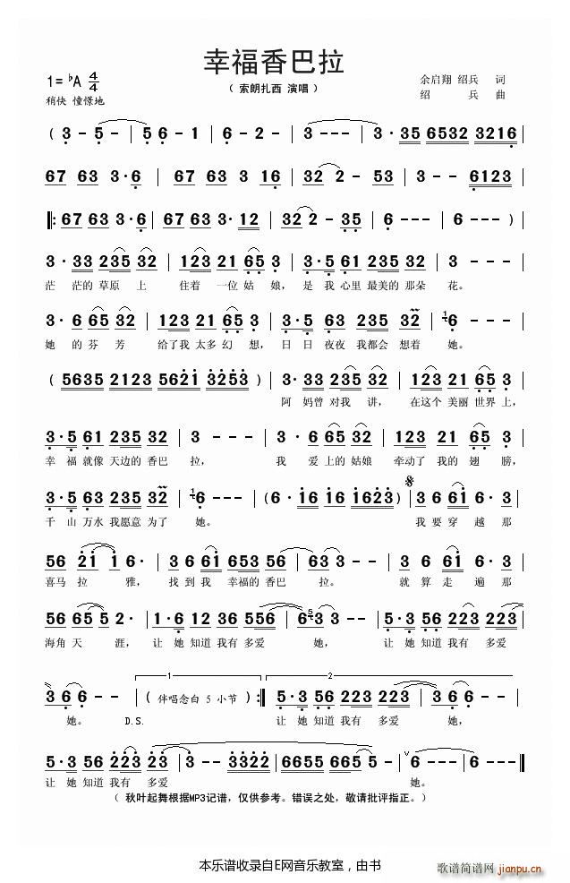 [五字歌谱]幸福香巴拉 索朗扎西