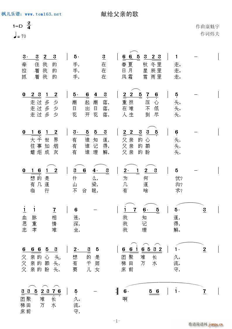 [六字歌谱]献给父亲的歌