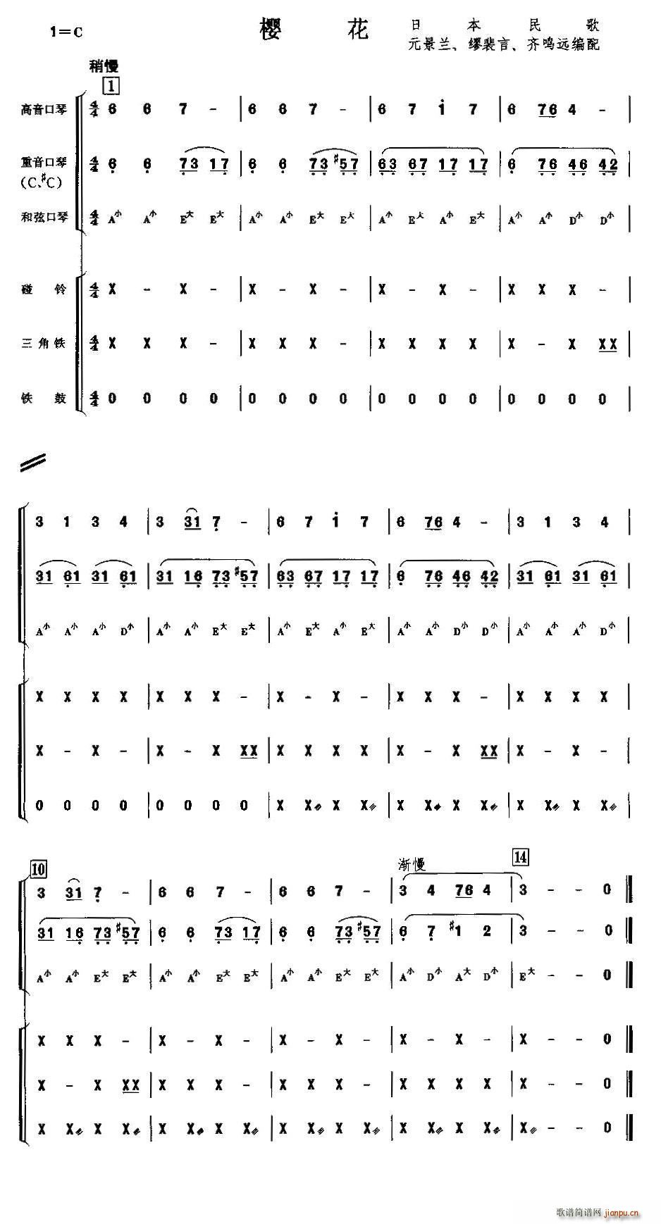 [口琴谱]樱花(口琴三重奏 打击乐)