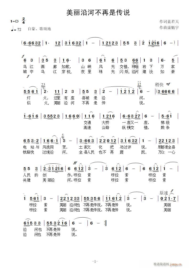 [十字及以上]《美丽的沿河不再是传说》作词 曲康魁宇
