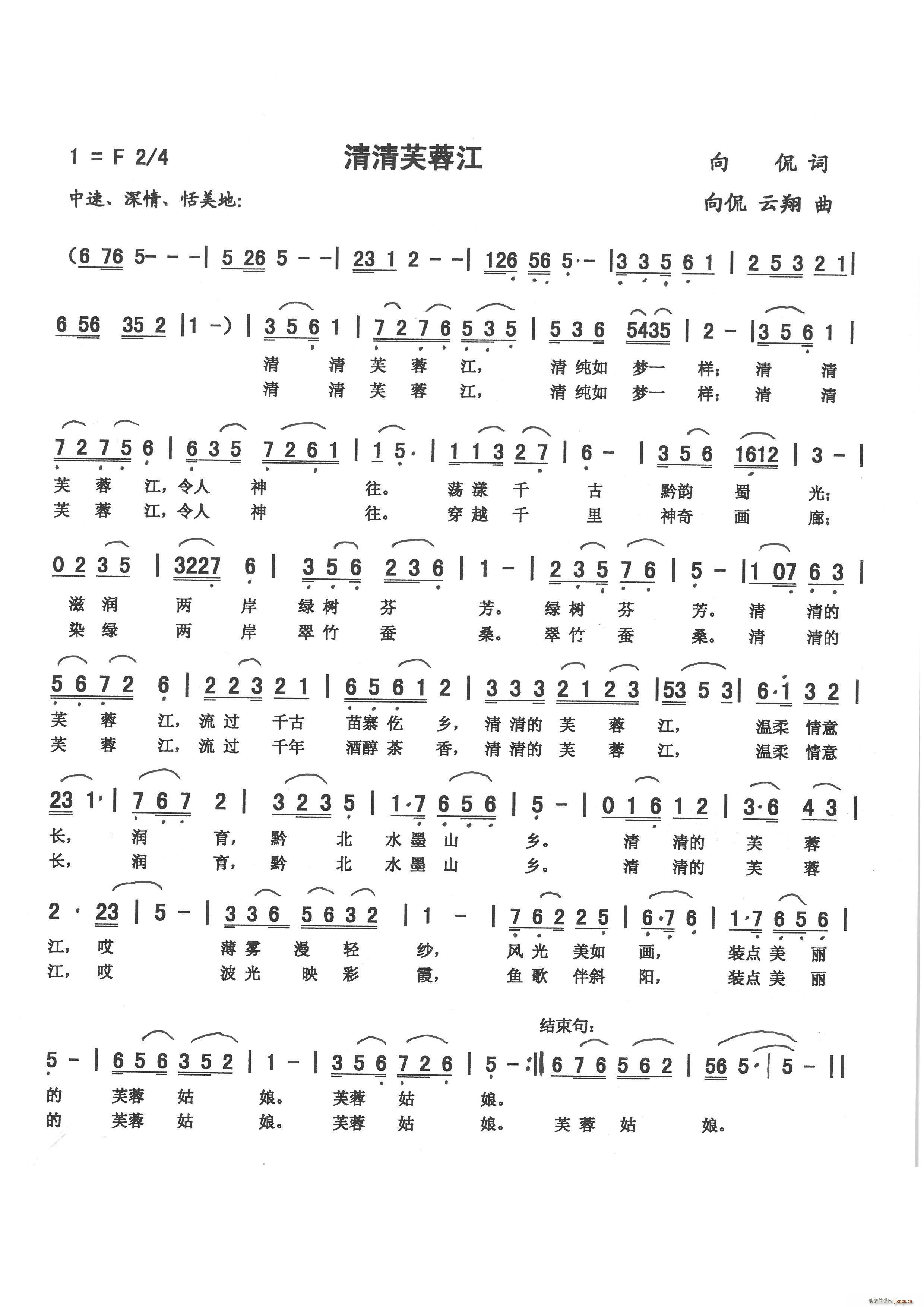 [八字歌谱]清清芙蓉江(向侃词 向侃、 曲)