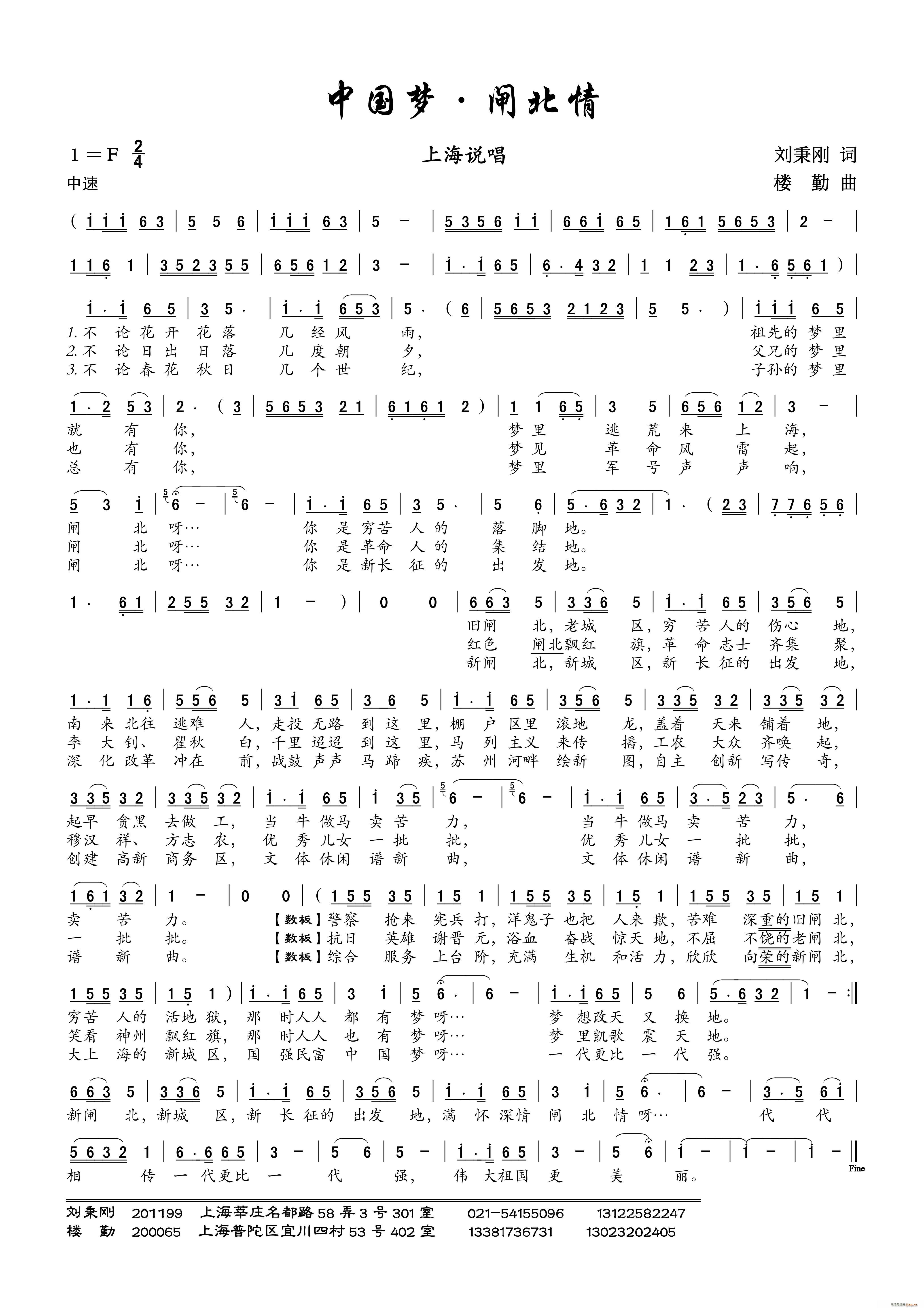 当前位置: 歌谱简谱网 > 十字及以上 > 中国梦 闸北情( 唱)