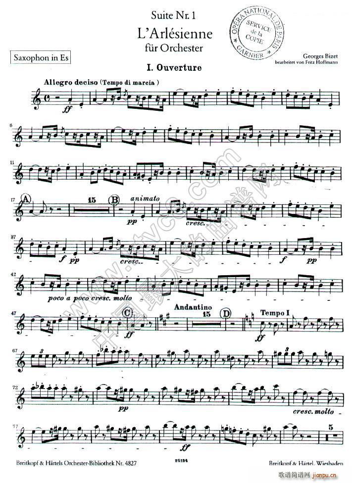 [萨克斯谱]芭蕾舞剧《阿莱城的姑娘》 萨克斯管乐队演奏乐谱