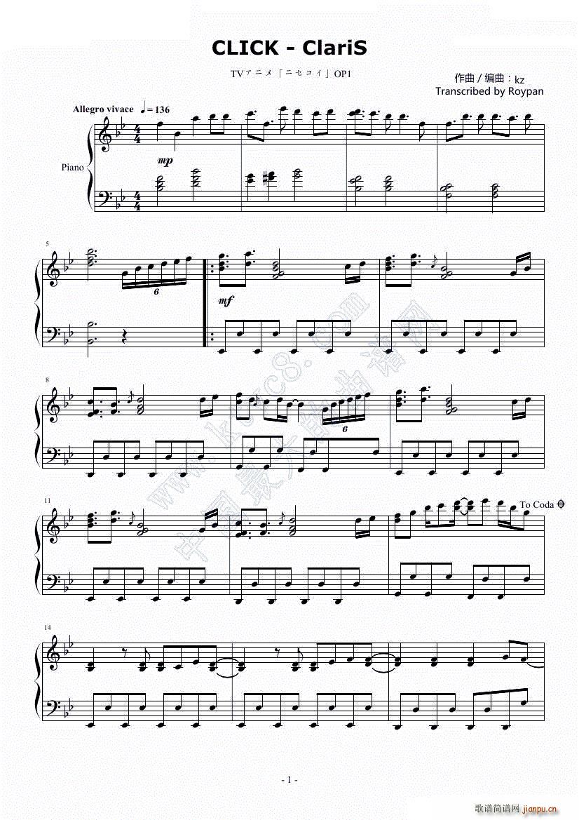 [钢琴谱]】伪恋OP1】CLICK - ClariS