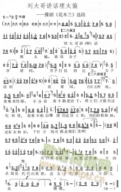 [豫剧曲谱]刘大哥讲话理太偏 花木兰 豫剧 旦角唱腔