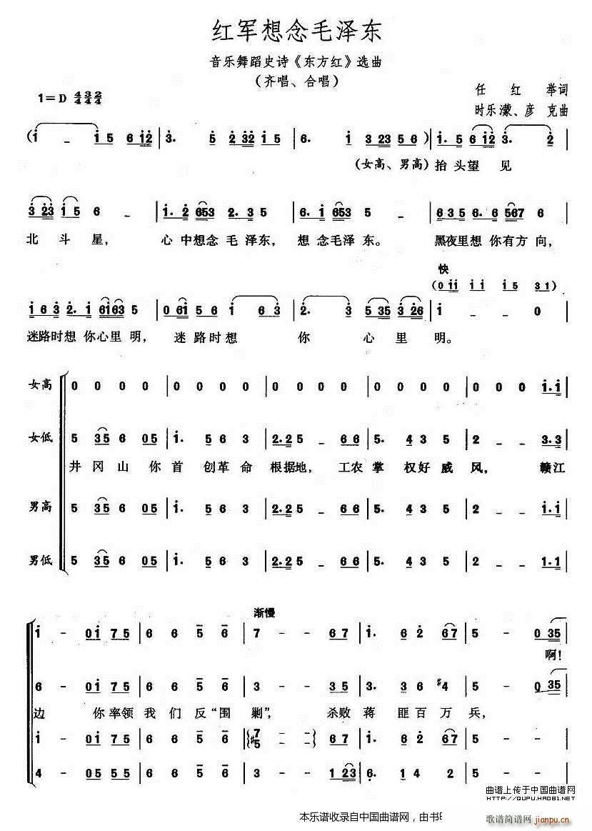 [合唱谱]红军想念毛泽东(音乐舞蹈史诗《东方红》选曲) 合唱谱