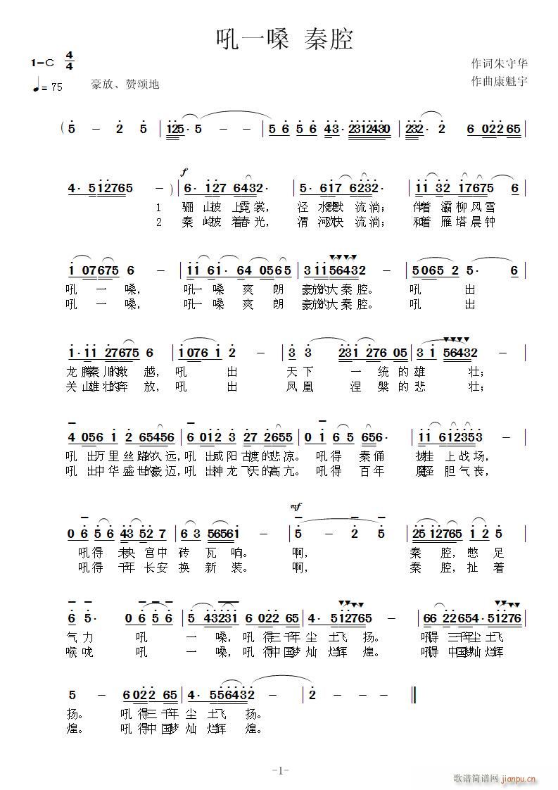 [七字歌谱]秦人秦地吼秦腔(旧词新曲)