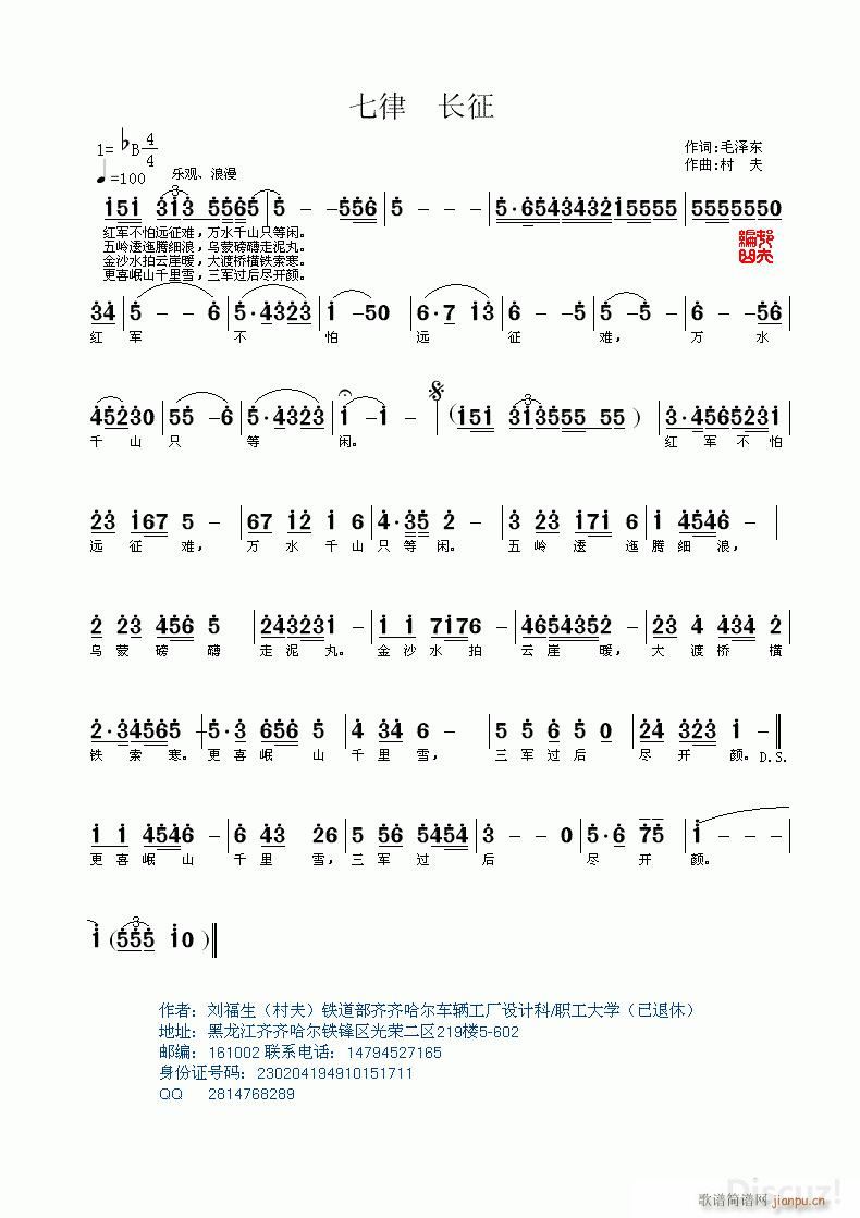 [十字及以上]七律《长征》试谱一新曲 献给最可爱的人民解放军
