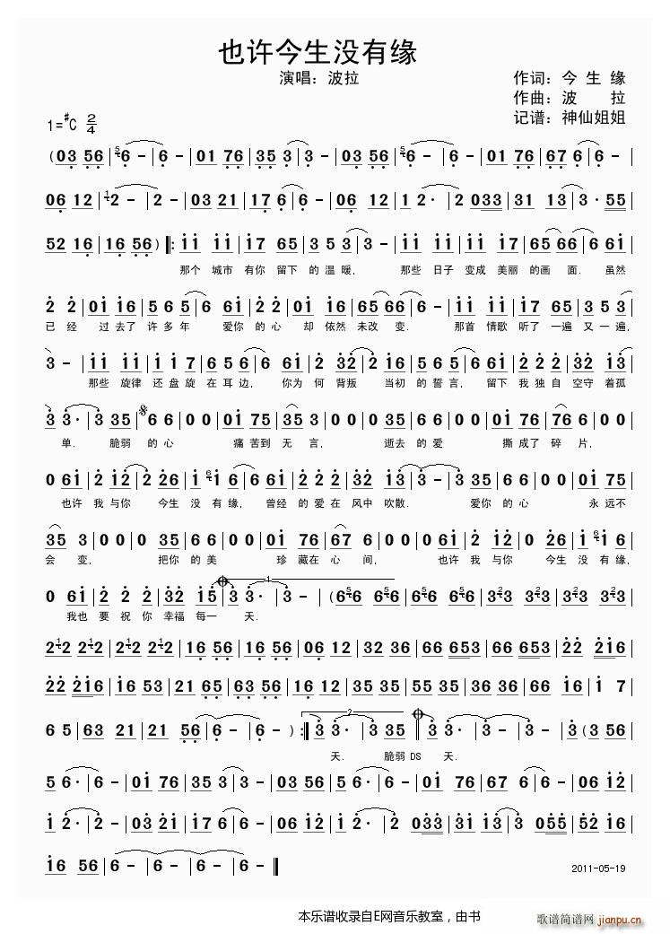 [四字歌谱]如果有缘(粤语) 叶倩文