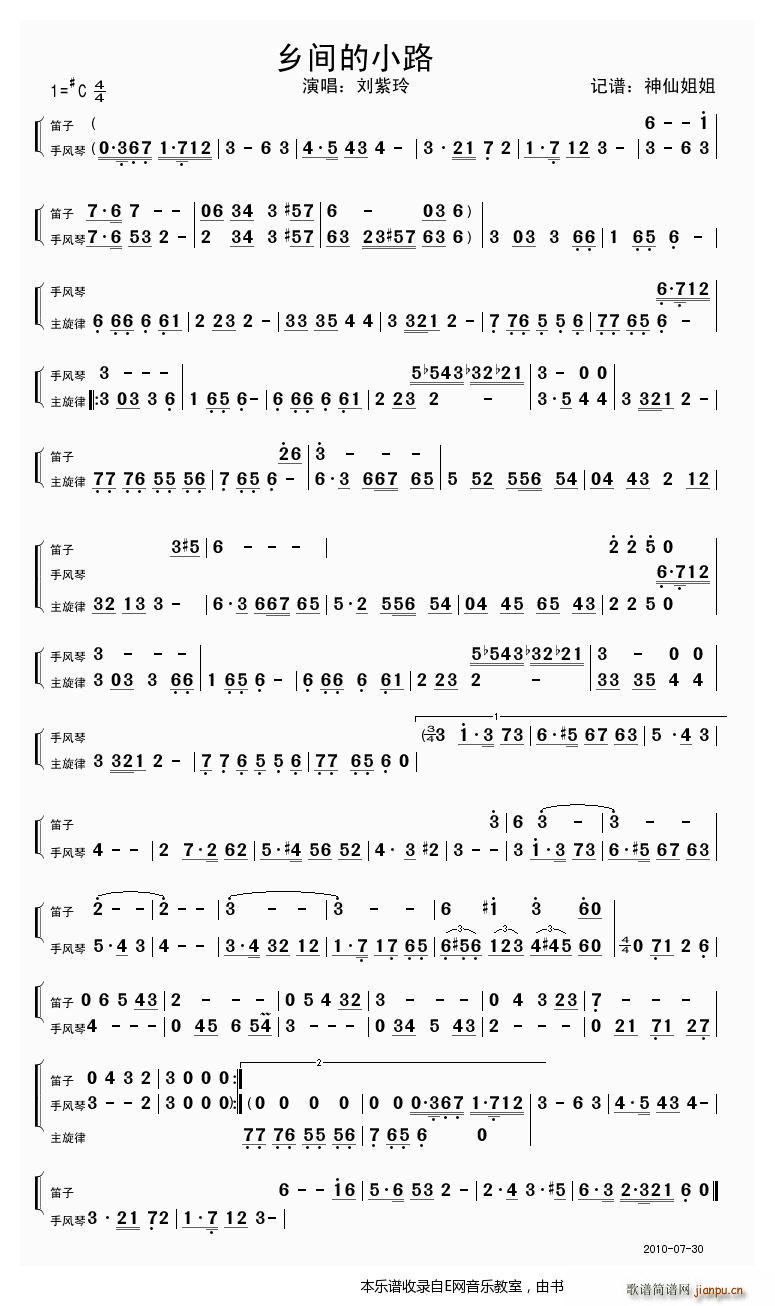 [电子琴谱]乡间的小路[电子琴谱] 未知