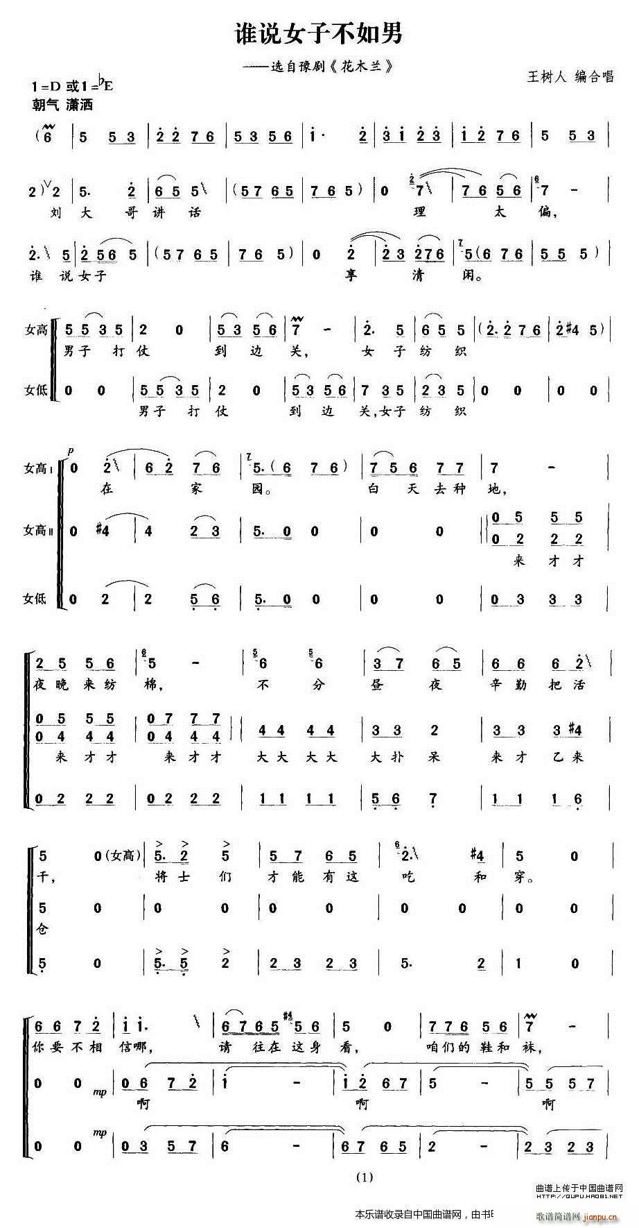 [合唱谱]谁说男子不如男(王树人编合唱版)