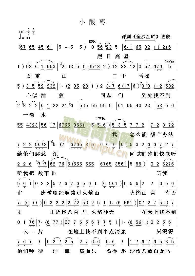 [三字歌谱]酸枣刺(选自《生产大合唱》)