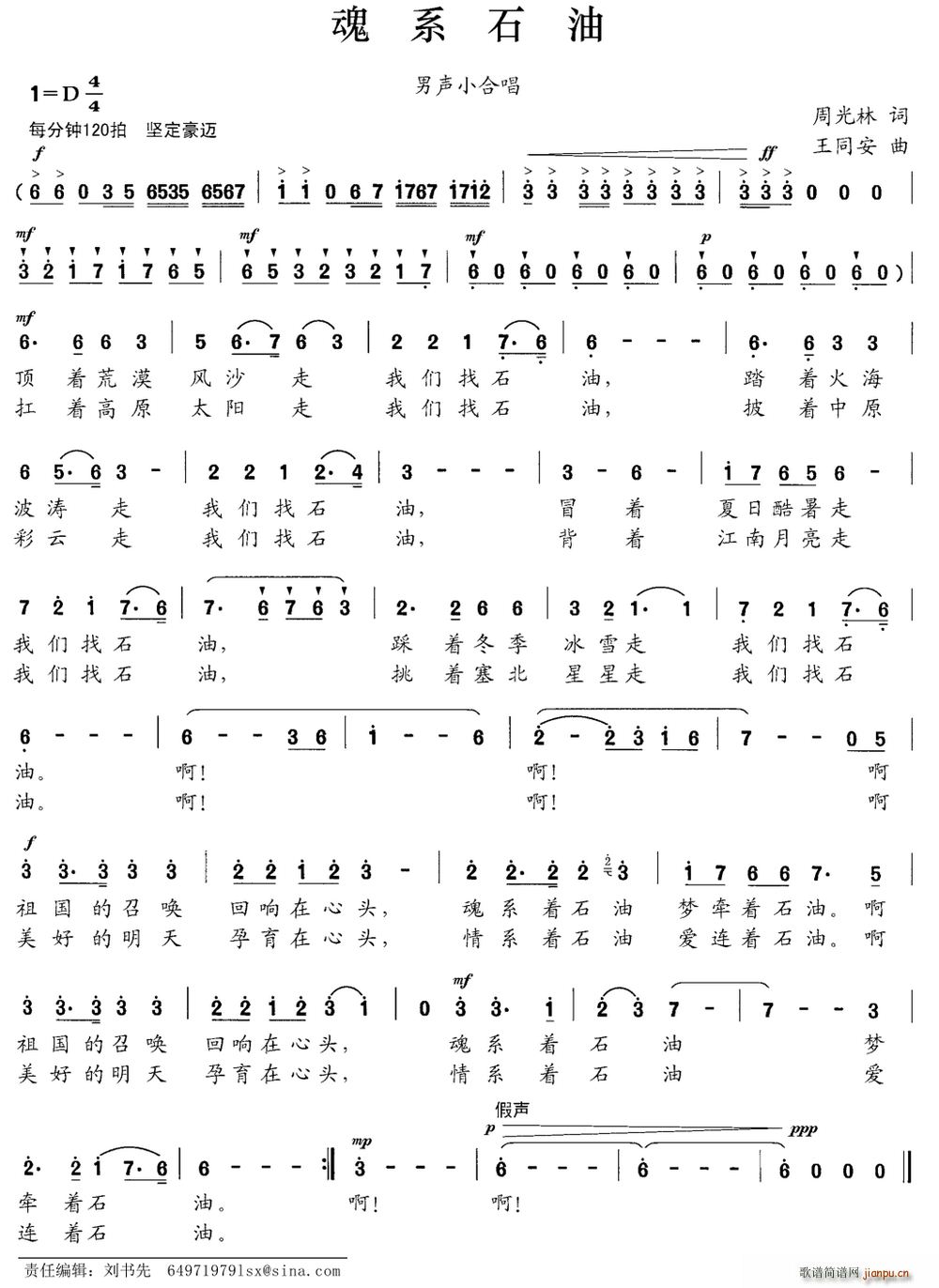 [四字歌谱]魂系石油(周光林词 王同安曲)