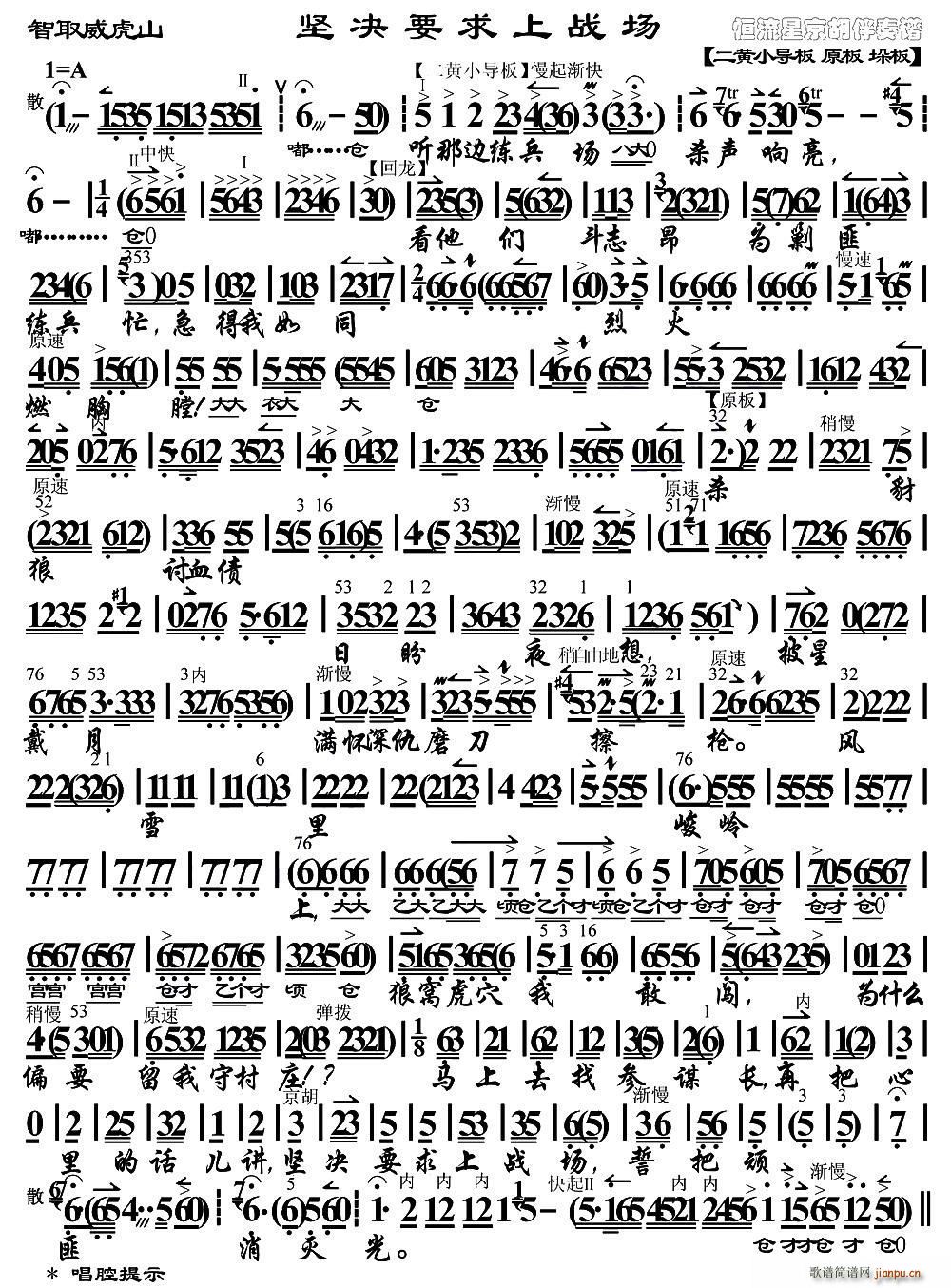 [京剧曲谱]坚决要求上战场(《智取威虎山》 唱段、琴谱) 常宝