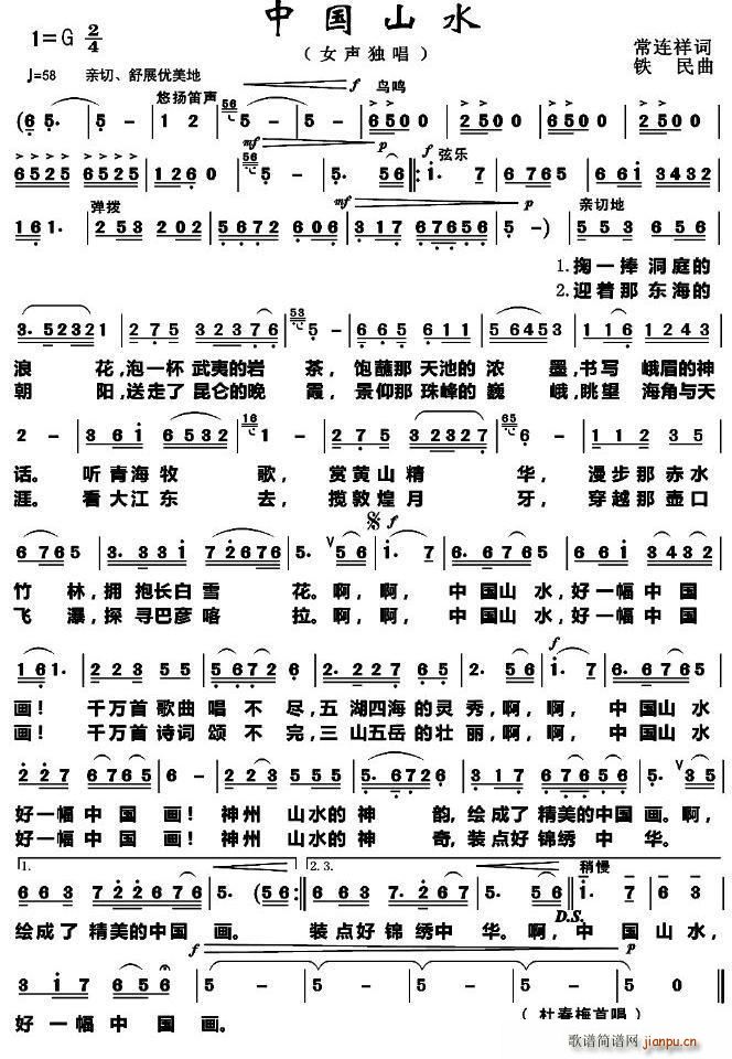 [三字歌谱][征歌] 《山和水》—重庆艺术节征歌 词 詹德胜 曲 王棹维
