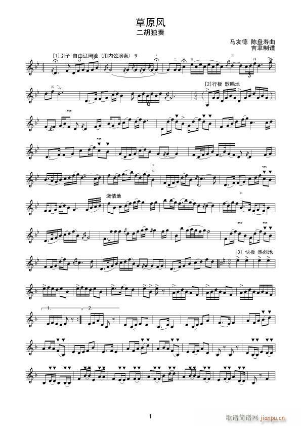 [二胡谱]草原风(二胡独奏)