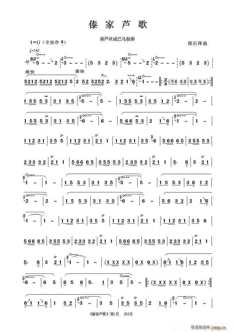 [葫芦丝谱]侗乡之夜 葫芦丝独奏