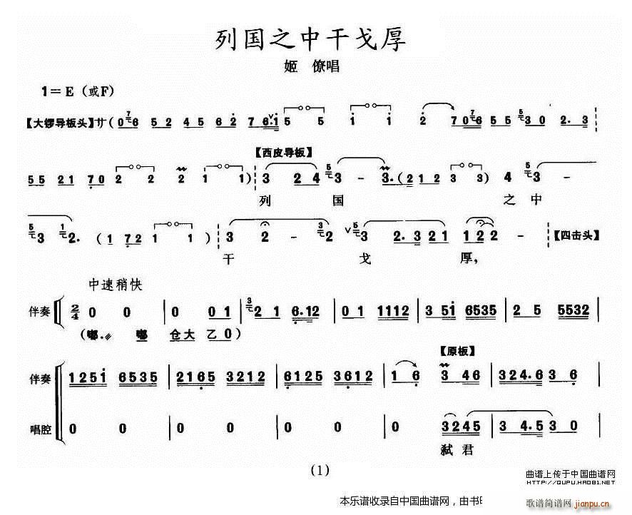 [京剧曲谱]列国之中干戈厚(《刺王僚》 唱段) 京剧戏谱 姬僚
