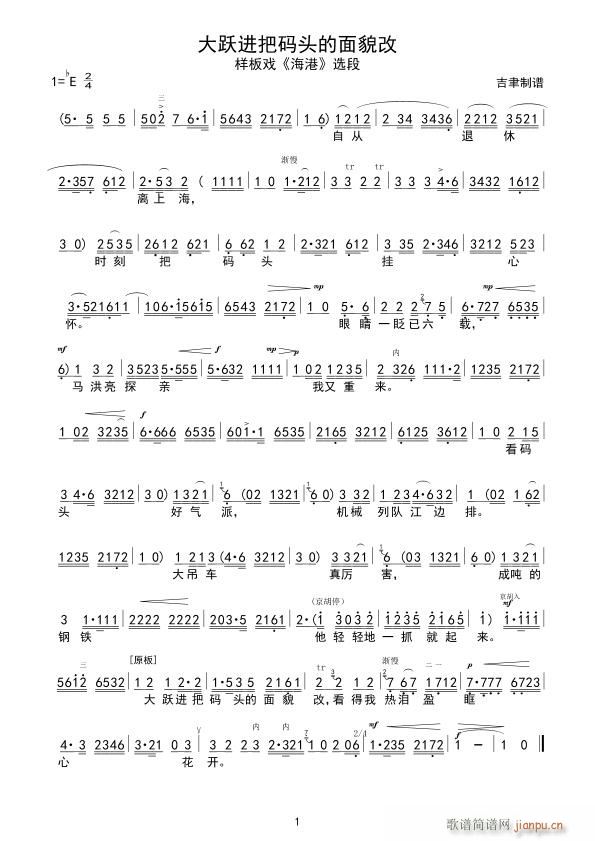 [京剧曲谱]大跃进把码头的面貌改(京剧) 朱文虎