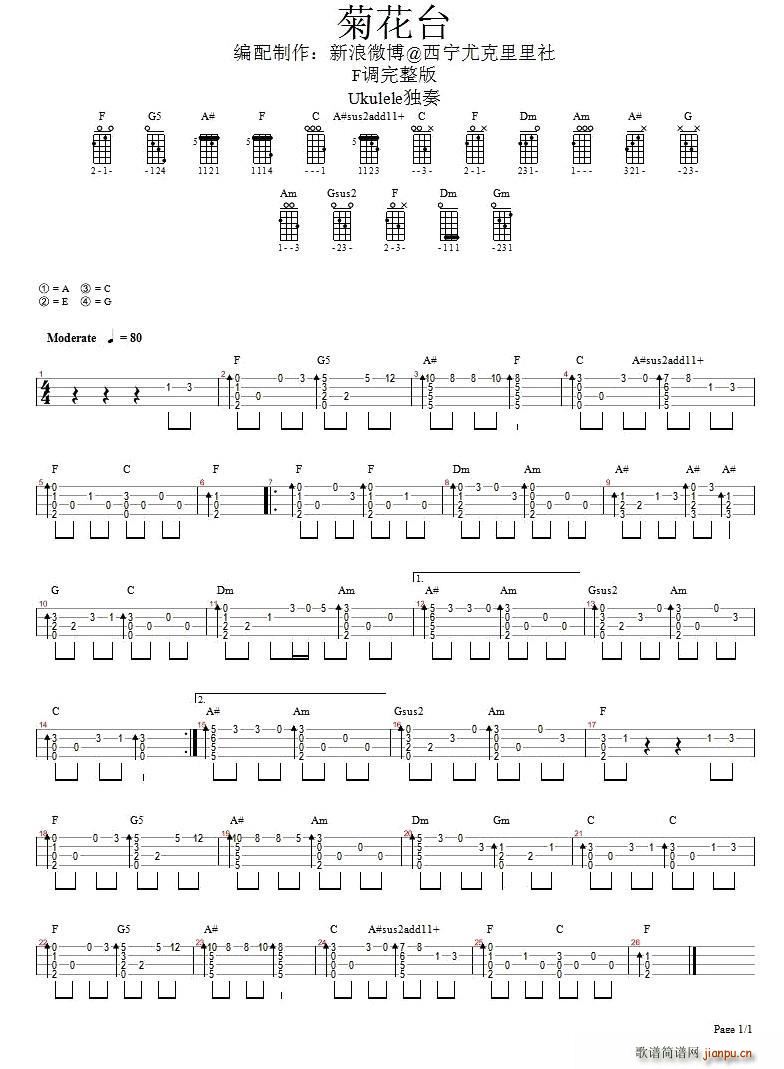 [十字及以上]幻化成风(尤克里里指弹谱)