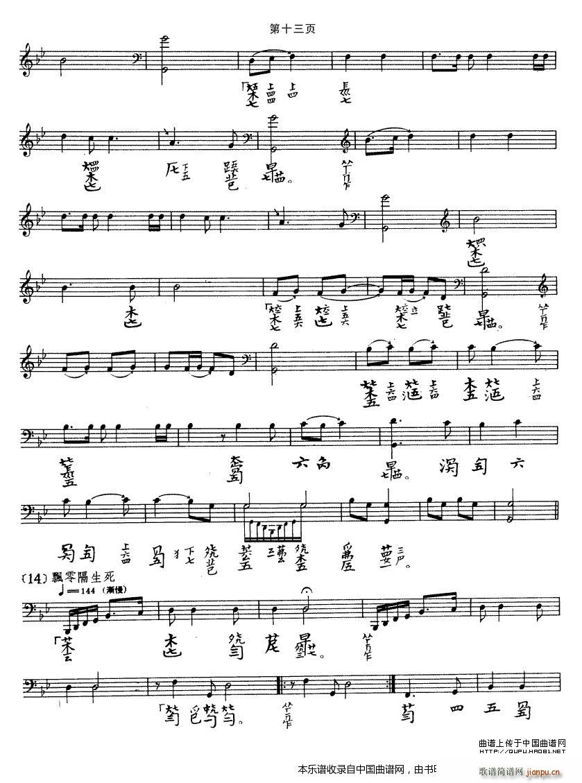 [古筝扬琴谱]胡笳十八拍(古琴谱 降B调 减字谱)
