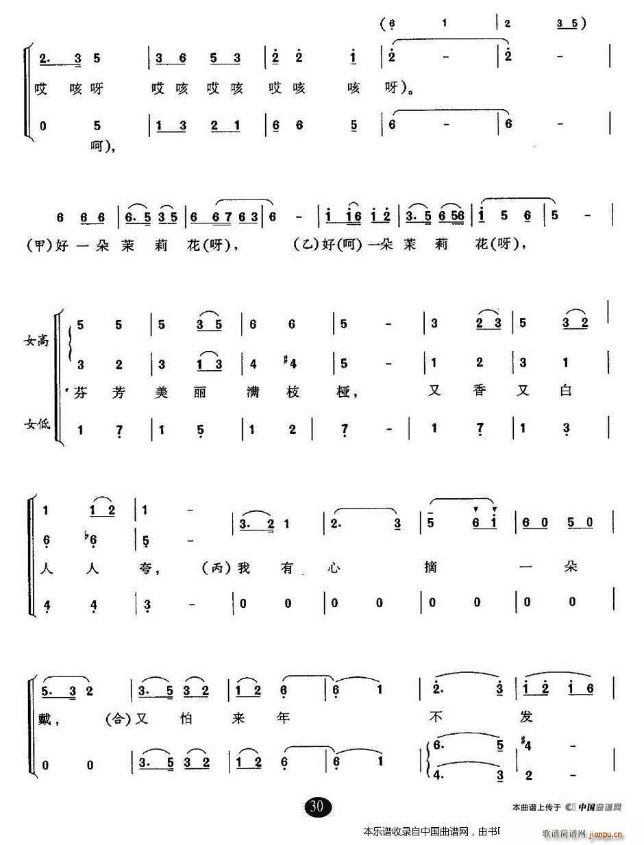 [合唱谱]茉莉花(童声合唱) 江苏省海安海陵中学