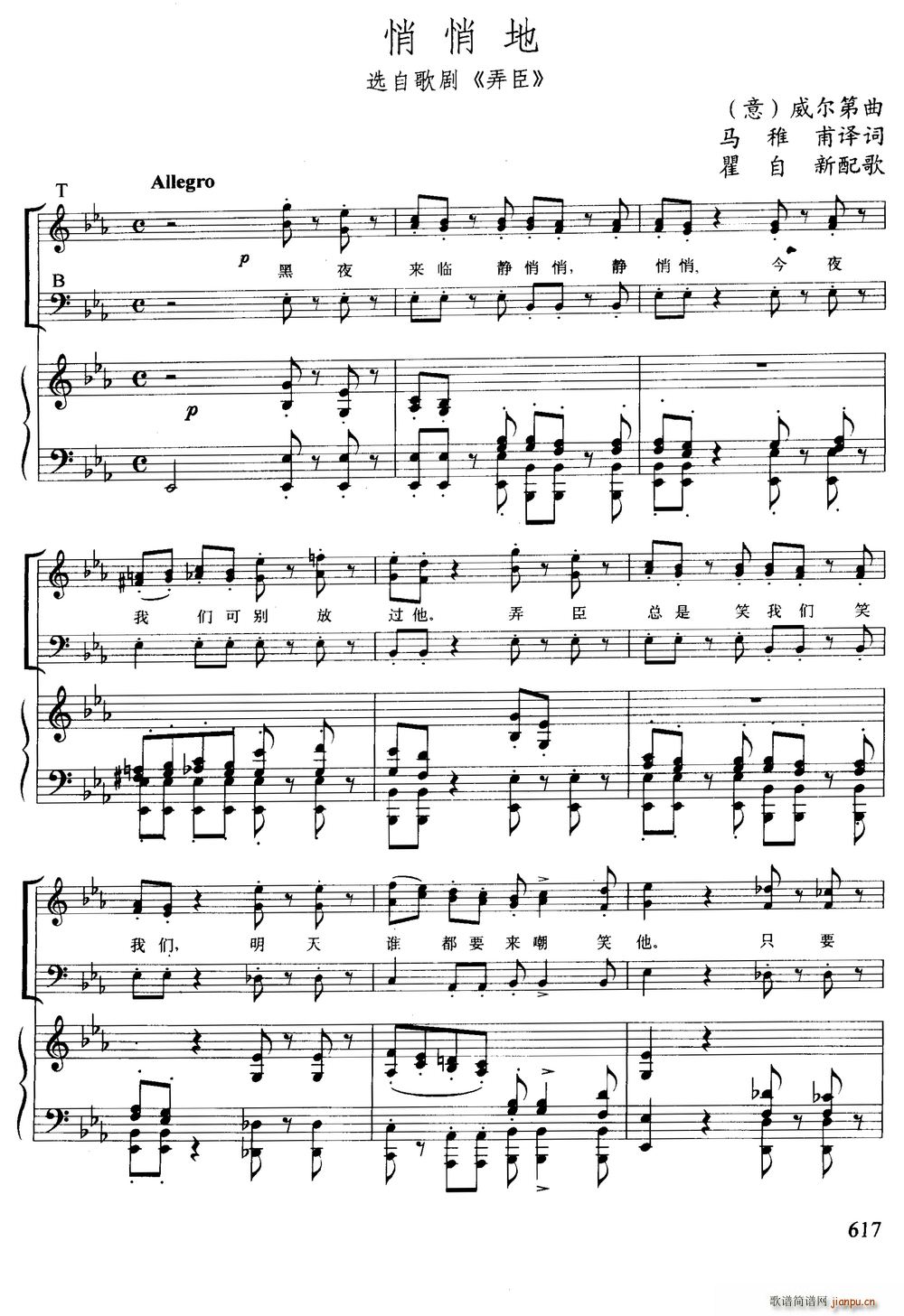 [合唱谱][意]悄悄地(选自歌剧《弄臣》)(合唱、 )