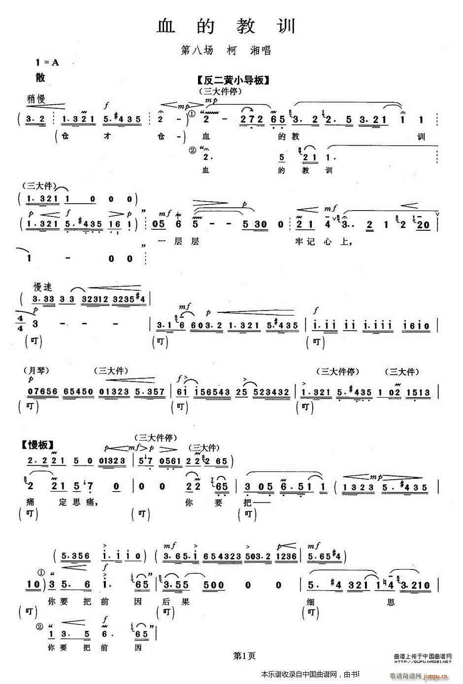 [京剧曲谱]血的教训(《杜鹃山》 唱段) 京剧戏谱 柯湘