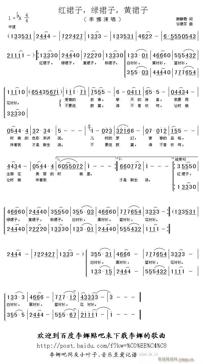 [九字歌谱]红裙子绿裙子黄裙子 李娜