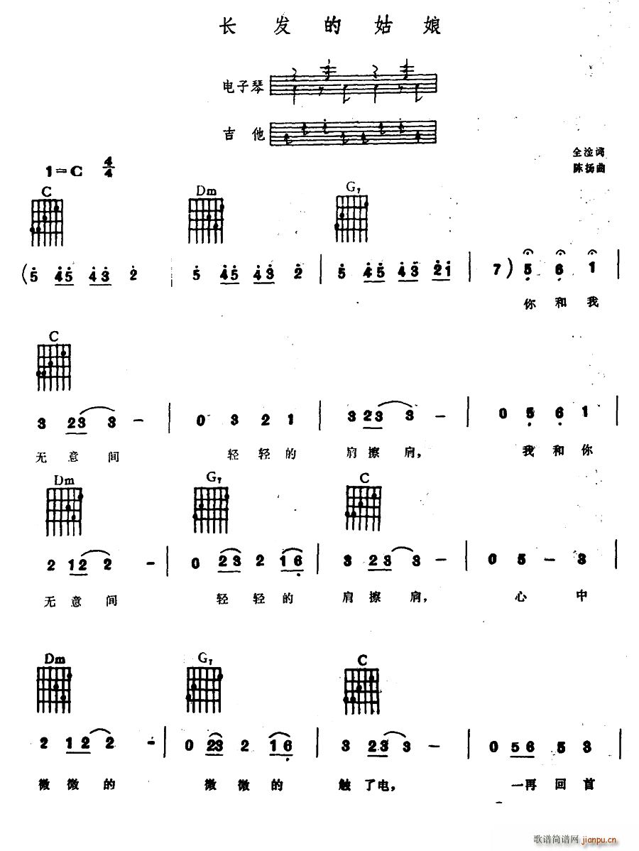 [电子琴谱]长发的姑娘(电子琴吉他弹唱谱)
