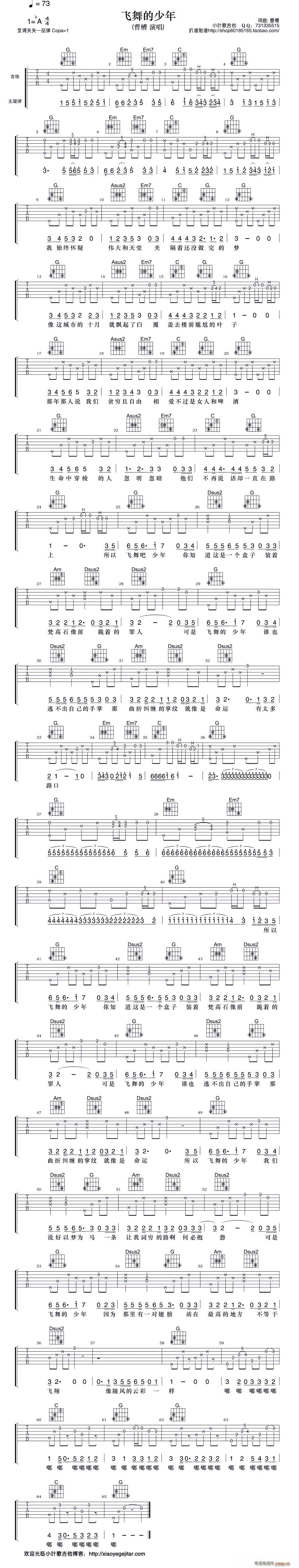 [吉他谱]飞舞的少年(吉他弹唱谱) 曹槽