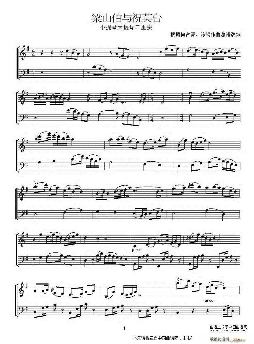 [小提琴谱]梁山伯与祝英台(大小提琴二重奏)