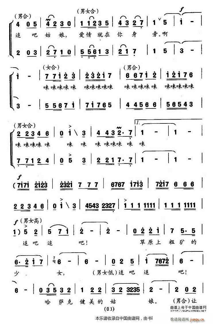 [古筝扬琴谱]欢腾地草原(原名 草原姑娘追)