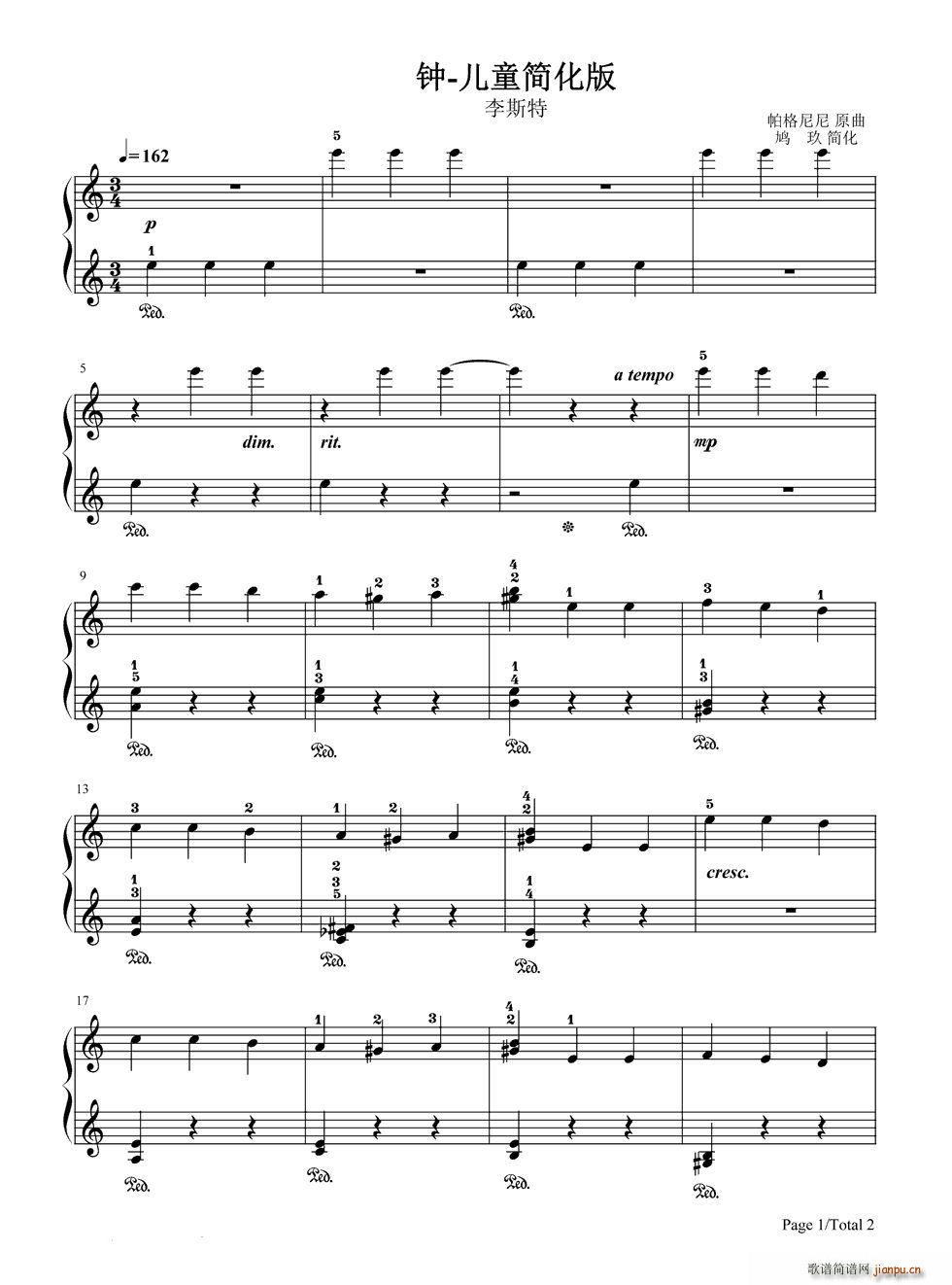 [钢琴谱]钟 最简完美版 李斯特