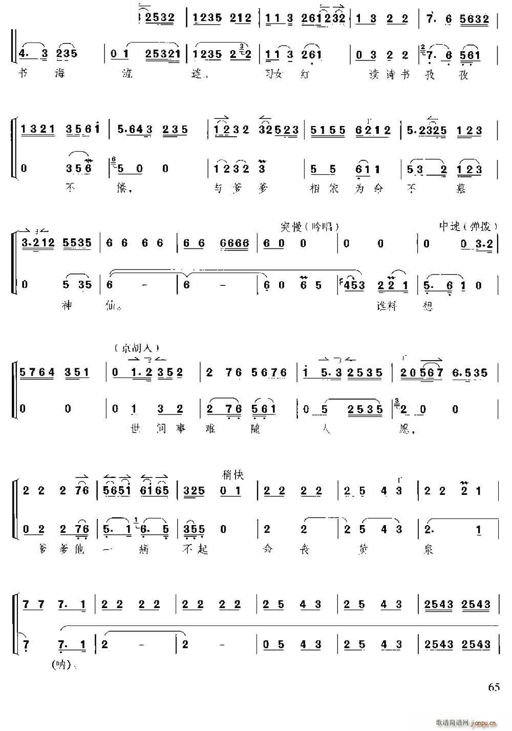 [京剧曲谱]张公道三十五六子有靠(《打侄上坟》 唱段、京胡伴奏 唱腔) 陈伯愚