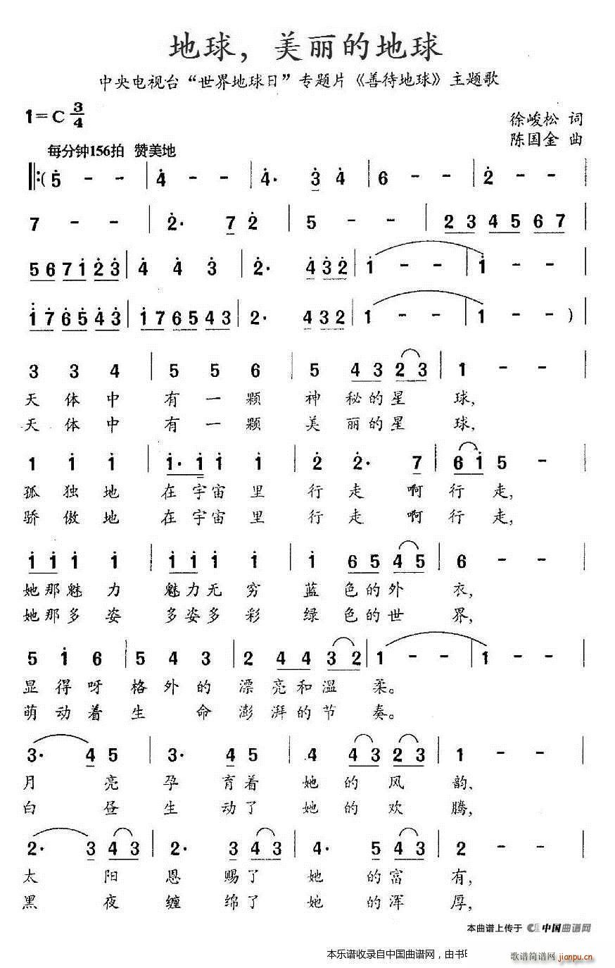 [五字歌谱]《我们的地球》许永刚词,黄清林曲